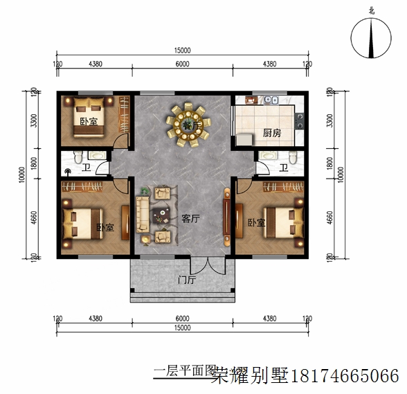 RY1040 一层别墅15mX10m-抖音【荣耀别墅】2