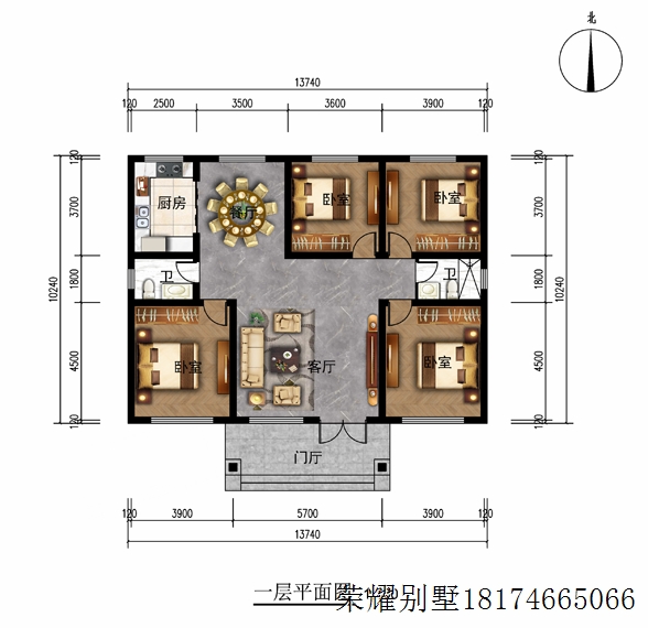 RY1057 一层别墅13.7mX10.2m-抖音【荣耀别墅】