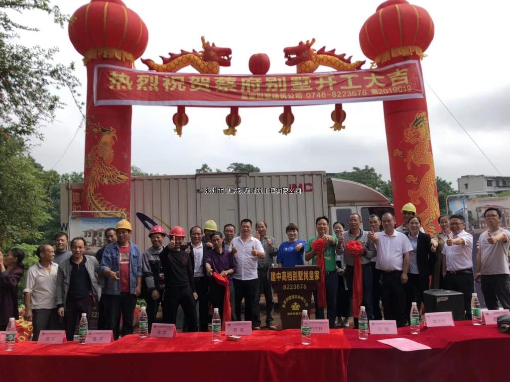 荣耀别墅建筑公司在蔡市镇蔡府举行了开工典礼仪式,这标志着,荣耀别墅建筑公司在蔡市蔡府别墅建筑项目,翻开了崭新的一页。