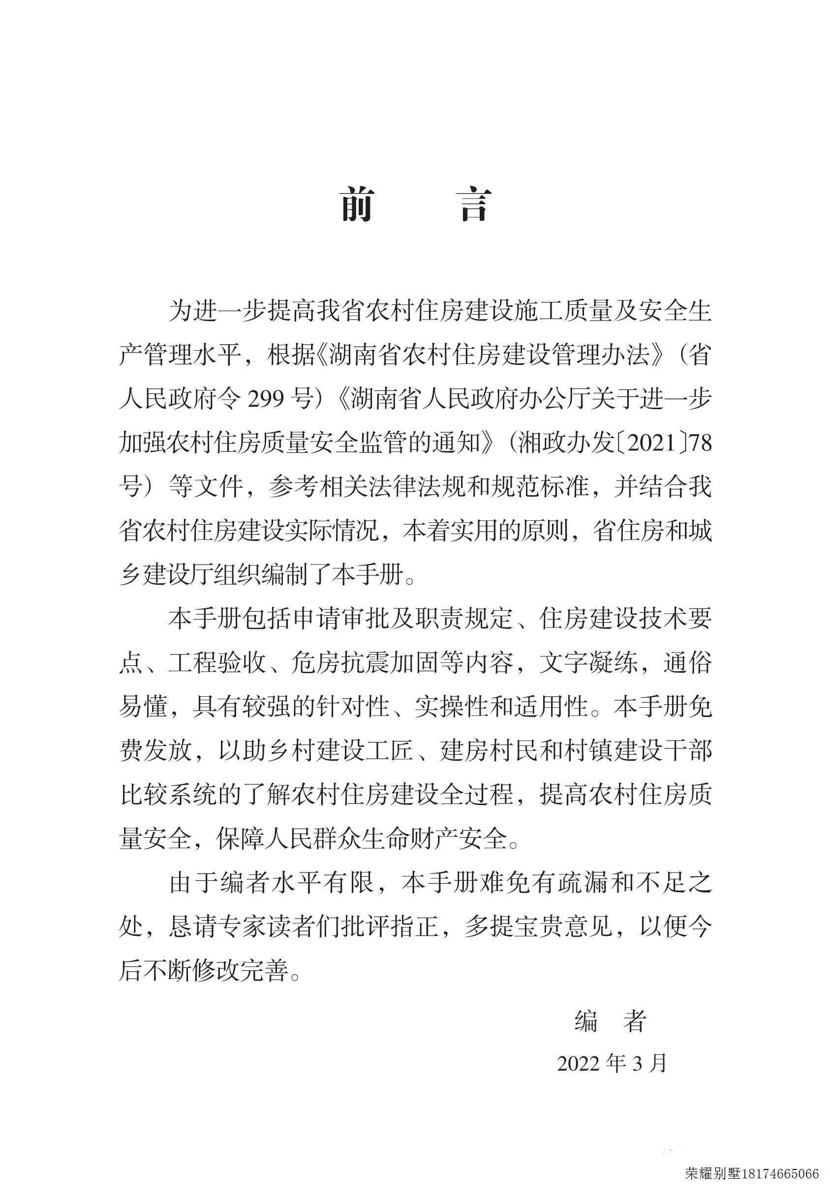 湖南省农村住房建设质量安全指导手册