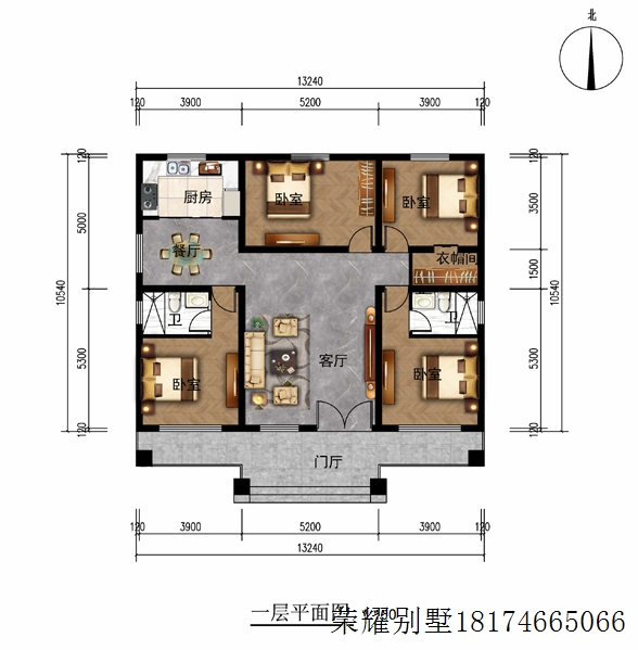 RY1035 一层别墅13.2mX10.5m-抖音【荣耀别墅】2